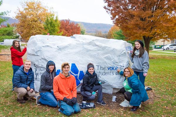 In its fourth year as an immovably immense (but far from immutable) campus landmark, "The Rock" was refreshed on a frosty Sunday with a recruitment message that never gets old. Representatives of the Student Government Association grabbed gloves and paintbrushes to remind their peers that the organization is the voice of Penn College students. ALL Penn College students – whether in a two- or four-year major, regardless of on- or off-campus residence. SGA is a conduit for conversation among students and for communication with administration and faculty, aiming for a productive and positive college experience. Want to get involved? Attend an SGA meeting, held at 7 p.m. most Wednesdays in Penn's Inn.– Photos by Rachel A. Eirmann, student photographer (unless otherwise noted)