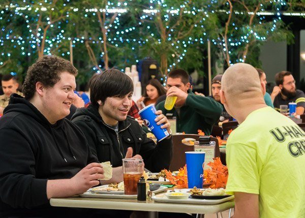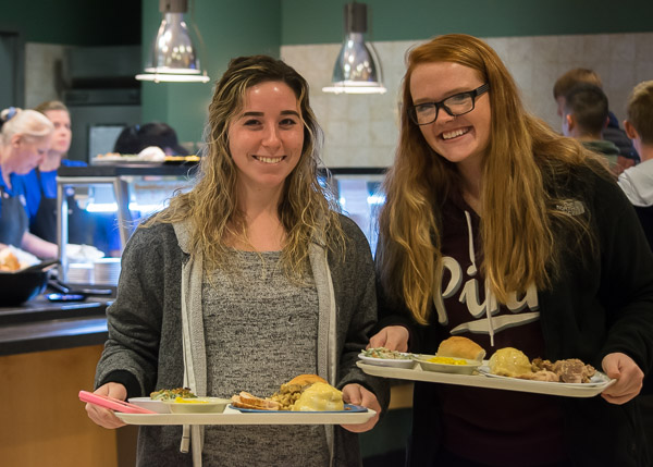 Nearly 400 students and employees were served at Dining Services' fourth annual Thanksgiving Dinner, held Tuesday evening in the Keystone Dining Room. The family-friendly meal (available for dining in or takeout) included turkey, filling, mashed potatoes, green bean casserole and a dessert table.Photos by Tia G. La, student photographer
