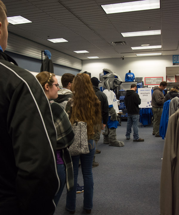 The College Store was filled with imminent alumni on Tuesday afternoon as it hosted a Grad Finale for students who have petitioned to walk across the Community Arts Center stage on Dec. 16. Commencement tickets, caps and gowns, and "all the information you need to enter the world after graduation" were conveniently available under one roof.– Photos by Rachel A. Eirmann, student photographer