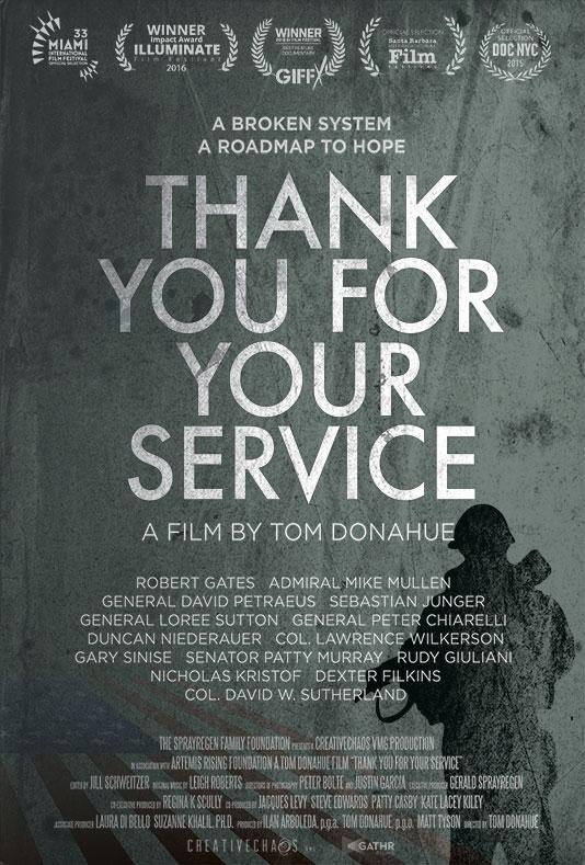 Described as an “important film” by The New York Times; “wrenching, gripping and persuasive” by The Village Voice; and a “film that every American should see” by The Star-Ledger, “Thank You for Your Service” uses the plight of four Iraq War veterans to explore the quality of mental health care for U.S. service members.