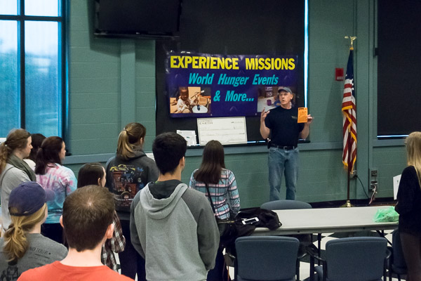 Penn College Cru hosted a seed-packing event in Penn's Inn on Saturday, prepping shipments of vegetable seeds that will be part of a broader aid package to East Africa and the Middle East. The activity was put on by Experience Missions of Cogan Station and sponsored by Centered Earth of Muncy, in partnership with GAiN (Cru's humanitarian arm). The packets were filled with collard-green seeds, which will continue to produce beyond a single harvest and which represent the equivalent of about 10,000 pounds of food. Medical treatment, as well as agricultural and spiritual education, will accompany the delivery to refugees from violence and natural disasters.Photos by Rachel A. Eirmann, student photographer