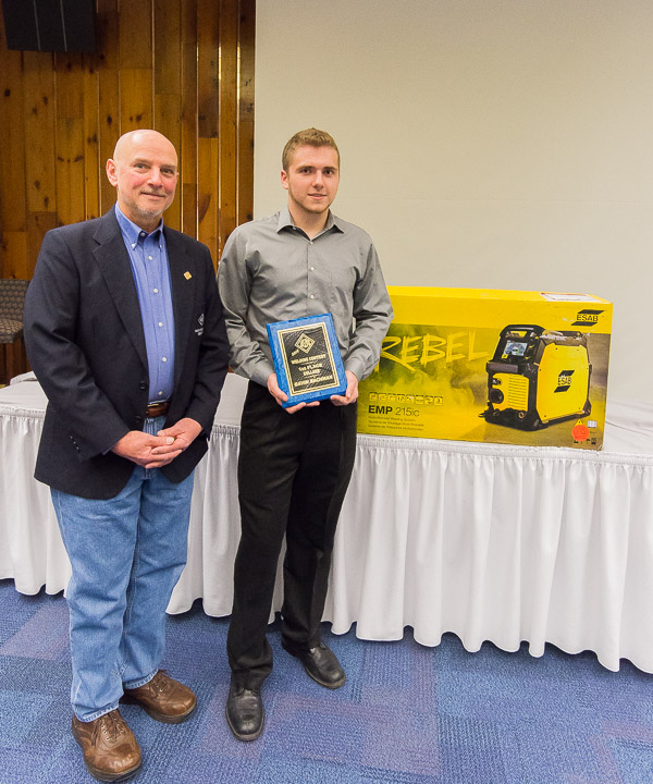 Six Penn College students were among those recognized at a recent American Welding Society banquet as the top winners in a peer-to-peer skills competition held this semester in the Avco-Lycoming Metal Trades Center. The annual event was the culmination of precision tasks performed by advanced welding students and judged by retired faculty and industry experts. Aided by X-ray inspection of the contestants' test-weld coupons, the judging team assessed the students' aptitude, selected the highest performers, and showered the winners with plaques and prizes. Awarded first through sixth places, respectively, were Gavin P. Bachman, of Slatington; Leif E. Brown, of Huntingdon; Skyler M. Cline, of Erin, New York; Timothy O. Passarelli, of Purcellville, Virginia; Douglas V. Carroll, of Gouldsboro; and Ethan D. Rosler, of Bloomsburg. Cline and Rosler are enrolled in welding and fabrication engineering technology; the others are all welding technology majors. The featured speaker for the evening, which also celebrated the winners of a related high school competition, was 2018 AWS President Dale Flood, of Tri Tool Inc. in Rancho Cordova, California.Photos by Rachel A. Eirmann, student photographer