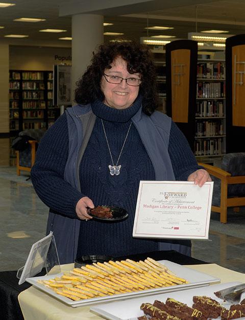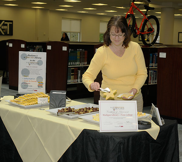 Madigan Library shared its Gold Star achievement with the Penn College community on Wednesday, serving cookies and brownies alongside confirmation of its successful climb in the PA Forward Star Library program. "The Madigan," the first academic library in Pennsylvania to reach the top level, will soon mark its 12th anniversary as a campus center of resources and relaxation.