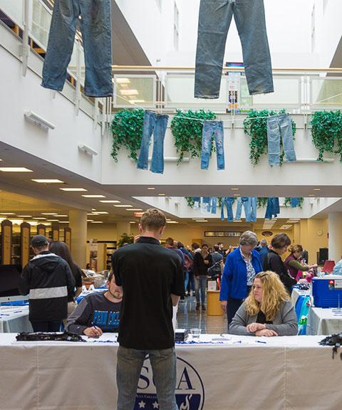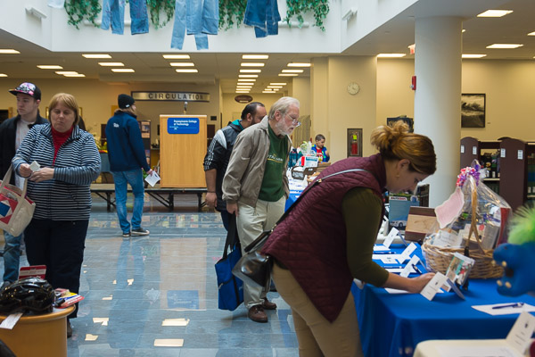 Final totals are still coming in, but preliminary results indicate that Friday's Student Government Association Silent Auction drew donations of $5,155 – thought to be the highest amount ever raised in the event's nine-year history. Bidders had their pick of a variety of items, ranging from artistic handiwork to themed baskets to gift cards, with proceeds adding to the Student Leader Legacy Scholarship Fund. "The Student Government Association is thrilled to have exceeded its $5,000 fundraising goal this year," said Anthony J. Pace, director of student activities. "The success of this year’s auction brings SGA one step closer to being able to provide additional scholarship support." He said this year's auction was a true collaboration among SGA, the campus and local communities, showcasing local craftsmanship and talent. "SGA appreciates the support of the campus community and looks forward to continuing to raise funds to support exceptional student leaders here at Penn College," Pace said.Photos by Rachel A. Eirmann, student photographer