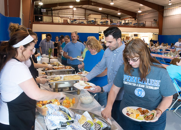 For the fifth year, the campus family ended the first Friday of summer hours with an Employee/Retiree Picnic in and around the Field House. The 11 a.m.-1:30 p.m. gathering featured lunch from Mel's Deli & Café in Montoursville, a variety of indoor and outdoor diversions, and the opportunity for leisurely conversation after another hectic academic year. Nonperishables were again collected to support The Cupboard, which assists Penn College students experiencing food insecurity.