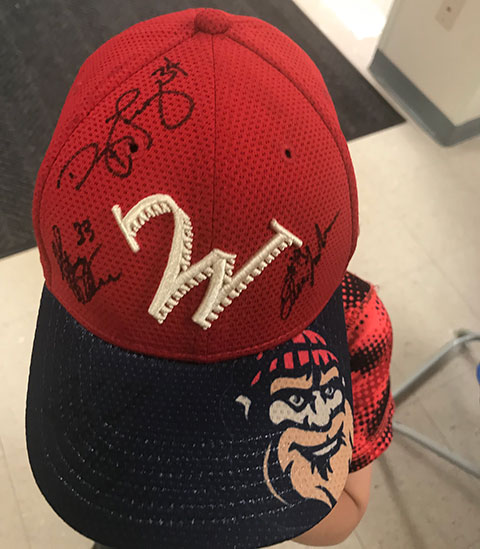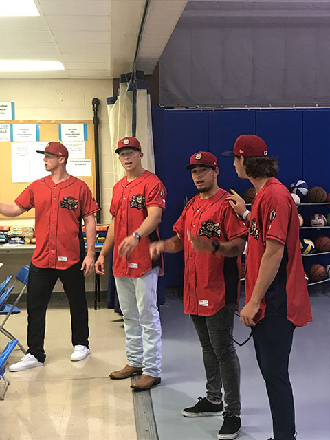 Four members of the Williamsport Crosscutters, back at BBT Park after a trio of early-season games in State College, visited Penn College's Camp ESCAPE on Monday morning. Pitchers Orestes Melendez and Ethan Lindow, infielder Stoney O'Brien and right fielder Danny Mayer joined the youngsters for dodgeball in the Field House, signed a number of items brought in for autographing and met with some very inquisitive campers. (In case anyone is wondering, hockey is the second-favorite sport for many of the teammates.) The 'cutters face three home games against the Auburn Doubledays this week.Photos by Jeremy R. Bottorf, coordinator of athletics for club sports, intramurals and camps