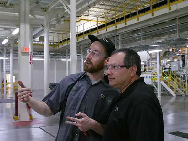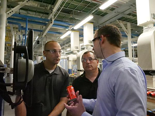 Jon W. Hart and Kevin Yokitis, instructors of electrical technologies and occupations, toured the 533,00-square-foot plant, which produces approximately 7 million aluminum cans per day for a variety of beverages.