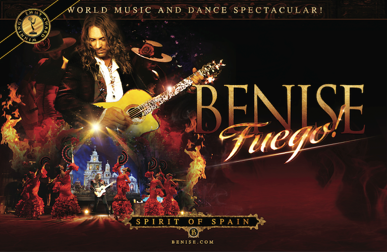 Armed with his Spanish guitar, Benise is backed by a stage full of musicians and elaborately choreographed dancers, handpicked by the artist from an international pool of talent. Flamenco dancers take center stage in a tribute to Old World Spain, while breathtaking couture and innovative staging and choreography give Spanish dance a fresh and luminous makeover.