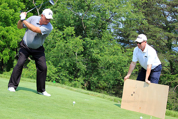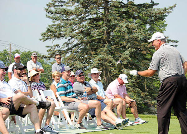 Aubrey Alexander, of Blaise Alexander Family Dealerships – a Penn College alumnus and member of the Golf Classic Committee – enjoys the exhibition.