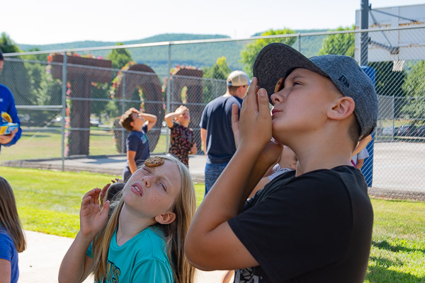 In the midst of World Cup, Wimbledon and the Tour de France, Penn College's Camp ESCAPE provided yet another option for hardcore sports enthusiasts: The Eating Olympics. Thursday's campers, enjoying a healthy dose of pleasant summer sun, were put through their paces in a series of food-related events outside the Field House. (The boys won the cracker relay, while the Skittles title went to the girls.) In addition to the day's edible treats, the seven-week summer camp – of which only two weeks remain – includes a regular diet of field trips, bowling, swimming, crafts, indoor and outdoor games, movies, and more.Photos by Rachel A. Eirmann, student photographer
