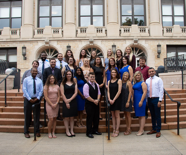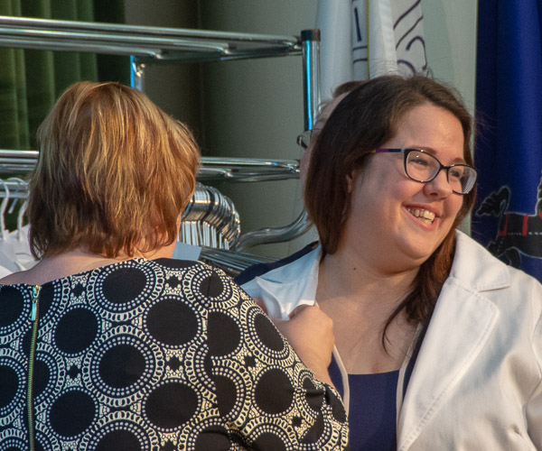 Students in the physician assistant Class of 2019 celebrated a milestone in their education on July 21 with the program’s traditional “white coat ceremony.” Twenty-seven students marked the completion of three semesters of intensive classroom study that will be followed – beginning with the Fall 2018 semester – with a full year of hands-on patient care at health care sites, under the supervision of clinical preceptors. The white coat, explained the program’s medical director, Dr. Gregory R. Frailey, in welcoming remarks, holds a great deal of symbolism. He dons his white coat each workday as though putting on the armor of compassion. Other speakers included Dr. Anju Sonia Dayal, a part-time instructor of physician assistant; Larissa D. Whitney, instructor of physician assistant; Brian M. McKeon Sr., assistant professor of physician assistant; and class representatives Kelly E. Heckman, of Bellefonte, and Wayne R. Jacobs, of Jersey Shore. The class, led by Physician Assistant Club President Valerie L. Kubalak, of Spring Mills, recited the physician assistant oath, pledging to hold the health, safety, welfare and dignity of all human beings as their primary responsibility, then presented gifts to the full-time physician assistant faculty, including a gift of $1,000 to the Global Down Syndrome Foundation in honor of Carter Whitney.