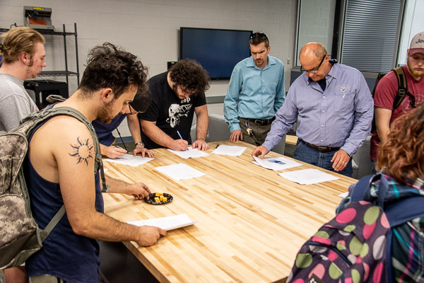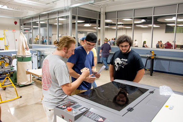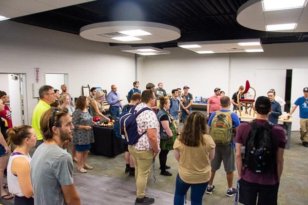Wednesday evening's open house at The Dr. Welch Workshop: A Makerspace at Penn College met with an overwhelming turnout, as curious employees and industrious students crammed into a laboratory that will soon be overflowing with creativity. The makerspace, dedicated last week and featured in a PCToday photo gallery, was designed by students as a springboard to cross-curricular innovation and collaboration. Weekly trainings and demonstrations in a variety of equipment and techniques – from casting to prototyping, cosplay to 3D printing – are scheduled 5 to 6 p.m. Thursdays from Aug. 30 to Nov. 15. (There will be no class on Oct. 18.) Interested Penn College students and faculty/staff can access the full schedule on the myPCT portal; no reservations are required.Photos by J.J. Boettcher, student photographer