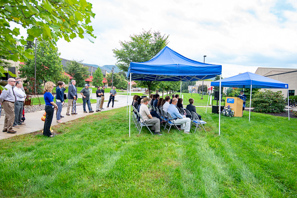 Attendees gather under tents and along the main campus mall to commemorate a much-valued friend of Penn College.