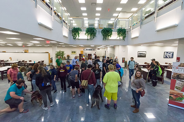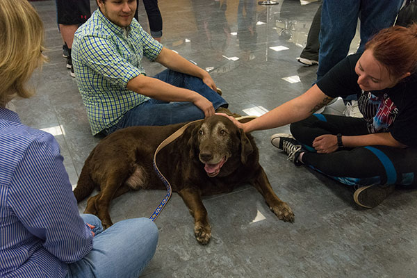 Therapy dogs, an ever-popular outlet for students' anxiety, returned to campus Wednesday to effortlessly ease the stress of midterms. The traditional activity is just one way that Madigan Library meets its mission of health literacy among members of the Penn College family. The dogs will return Dec. 5 during Finals Week.Photos by J.J. Boettcher, student photographer