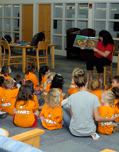 Preschoolers from the Dunham Children's Learning Center visited Penn College's Madigan Library on Tuesday morning for story time. Tommie L. Smith, library operations/public services assistant, and April N. Line, library support services assistant, each read an autumn-themed book to the boys and girls gathered on the first floor. The visit is among the activities scheduled during National Campus Children’s Centers Week (Oct. 8-12).