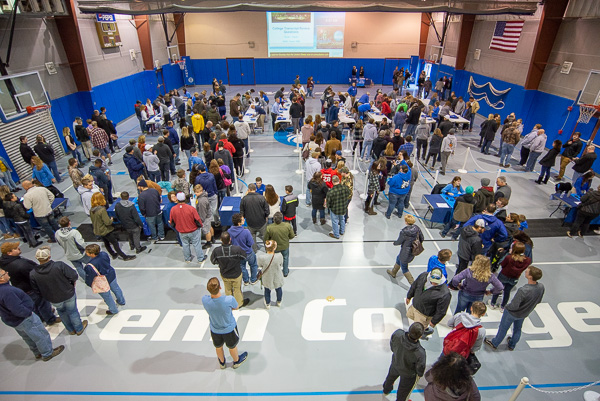 At a gadget-laden table touting the college's Remote Control Club, a guest talks with Ryan S. McCrickerd, an aviation maintenance technology major from Bethlehem.