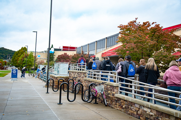Student Ambassador Maepearl E. St. George assists guests arriving at the Field House. St. George is a pre-physician assistant student from Bellefonte.