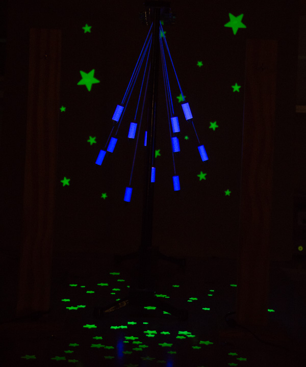 A glow-in-the-dark pendulum delights guests in the “Haunted Physics Lab.”