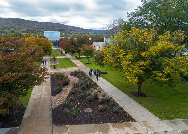 Still holding onto “the green” – with just a touch of autumn – campus walkways brim with activity.