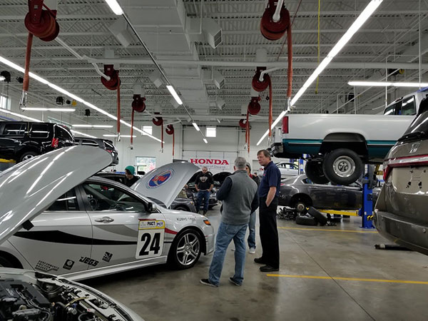 Honda PACT instructor Charles F. Probst staffs the major's spacious and well-stocked lab in the Parkes Automotive Technology Center.