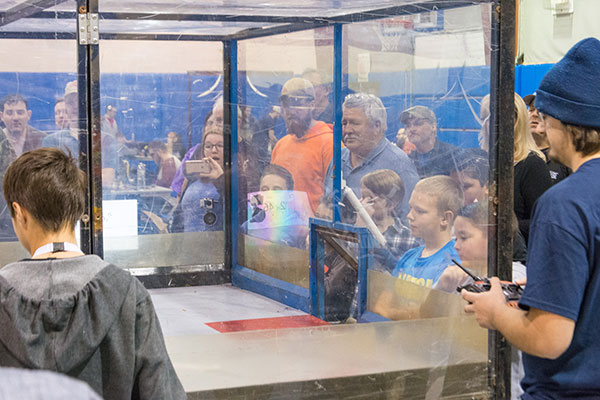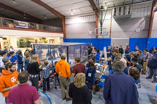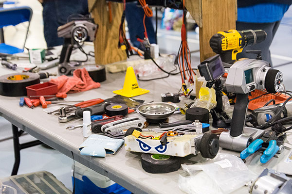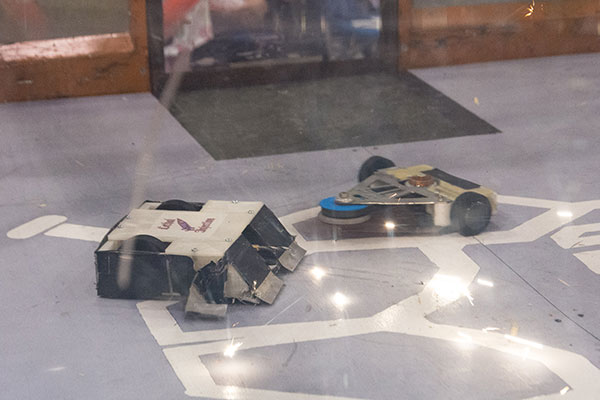 Penn College hosted battles of ingenuity during SWORD Fall Fights 2018 in the Field House. Approximately 45 combat robots, designed and built by Penn College students and members of the public, “fought” in the double-elimination tournament on Nov. 17. About 130 people attended the daylong event, which featured 1- and 3-pound weight classes. "In an event like this, students get to see engineering in action,” said Craig A. Miller, instructor of engineering design technology and adviser to the Student Wildcats of Robotic Design Club, which sponsored the event. “They design, build and test their robots against other builders. They see what works and what does not and make design improvements in an effort to make their robots more competitive."