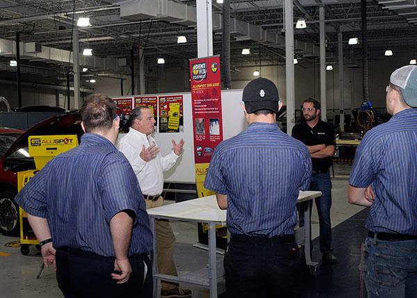 Hack explained that Daniel L. Maloney Jr., national sales director for the California-based company and a member of the Collision Repair Advisory Committee, identified an opportunity to help and followed up with Erik J. Spitznagel, Dent Fix Equipment CEO, for the generous donation of the Aluspot Deluxe DF-900DX aluminum dent-repair station.