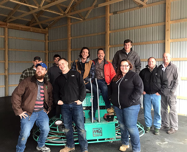 Penn College construction majors traveled to Malvern this month for an eye-opening perspective on the commercial concrete industry. Instructors Franklin H. Reber and Harry W. Hintz Jr. accompanied students from their Concrete Construction (BCT238) classes on a visit to Forcine Concrete & Construction Co. "The company took a lot of consideration into the presentation of what they do," said Josh E. Rosenberger, of Chambersburg, a residential construction technology and management: building construction technology concentration major. "We got our hands on everything from power trowels to pump trucks to total stations. We sat through several information sessions throughout the day pertaining to Forcine and its sister company, Durable Surfaces. Coming from a residential background, I was flabbergasted to hear that they pour over 1,000 yards of concrete per day with a crew of five or six." Students were permitted to operate equipment – both at headquarters and at a nearby site where a pour had just occurred – and were given an extensive tour of the facility. "Forcine Concrete is very encouraged to finally have found a partner in Penn College that is teaching the next generation work skills that we can utilize in our growing industry," said Derek Cressman, president of Durable Surfaces, who, given the caliber of students that visited, said company officials look forward to maintaining the relationship with the college. Of the students in attendance, five are enrolled in the concrete science technology major that began during the just-ended Fall 2018 semester (and can be completed in only one year beyond a building construction technology degree). The first cohort of students from the new major will enter their internship experience this summer.Photos provided