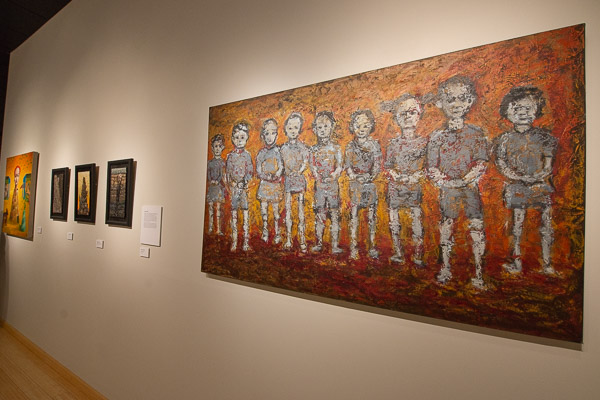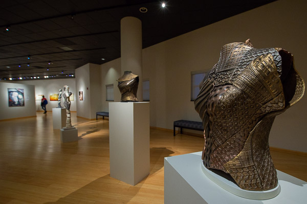 The Art of Influence: Breaking Criminal Traditions,” during a campus talk on Thursday. Jefferson and Charles Gniech, curator of the exhibition, delivered their remarks at an evening reception in The Gallery at Penn College. Attended by a large crowd of students, faculty, staff and community members, the gathering offered an opportunity to explore the collection of thought-provoking works created by 21 artists. The aim of the fine art exhibition is to raise awareness of global human rights violations and promote social change. “The Art of Influence” is on display through Feb. 28. Located on the third floor of Madigan Library, the gallery is open from 2-7 p.m. Tuesdays and Thursdays, 11 a.m.-5 p.m. Wednesdays and Fridays, and 1-4 p.m. Sundays.
