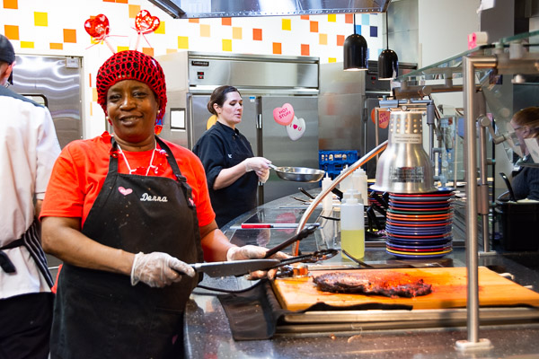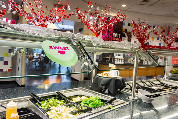 Food-lovers found sweetheart deals at Dining Services' Valentine's Day buffet, held in advance of the holiday ... and in spite of not-so-nice weather. Tuesday's mouth-watering Capitol Eatery menu included lobster ravioli, pork persillade, roasted fresh vegetables and homemade bread.Photos by Rachel A. Eirmann, student photographer