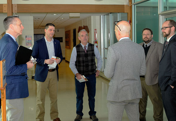 State Rep. Clinton D. Owlett, who represents the 68th legislative district (all of Tioga County and parts of Bradford and Potter counties), visited Penn College on Thursday. Accompanied by aide Kim Johns, Owlett began at the Schneebeli Earth Science Center, hearing themes that would echo throughout his day: the college's status as a "true commonwealth asset," the primacy of business and industry partnerships, students' enhanced marketability from the incorporation of core subjects in their chosen majors, and the life-altering and career-building potential of "degrees that work." After touring diesel, power generation and forestry laboratories, Owlett traveled to main campus for lunch at Le Jeune Chef Restaurant and stops at nursing, collision repair/automotive restoration, and culinary arts and hospitality. An assemblyman since May 2018, the Wellsboro Republican serves on the Agriculture & Rural Affairs, Appropriations, Commerce, Game & Fisheries, and Health committees.