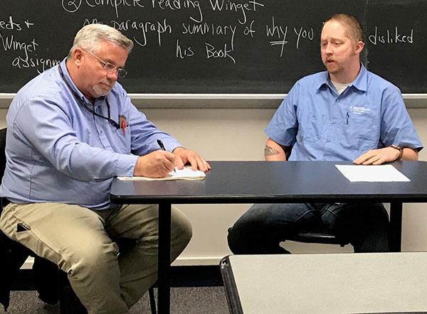 Bryan E. McCaffery, HVAC department supervisor at Bucknell University, recently returned to his alma mater to conduct mock interviews to prepare the students in Kathy M. Richards’ Communications class (ENL010) for job placement upon graduation. A 1981 graduate of Williamsport Area Community College's diesel mechanic major, McCaffery also earned a Penn College degree in heating, ventilation and air conditioning technology in 1998. He is a former director of maintenance and facility operations for the Williamsport Area School District and, Richards said, "was happy to give back to the college that has equipped him to be successful in life!"Photos provided