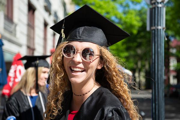 Accustomed to shepherding thousands of students along the road to graduation, Jennifer McLean – associate dean of student affairs – celebrates with her son. Patrick McLean Bowes, who will continue his education at Penn State in the fall, earned an associate degree in business management (with high honors).