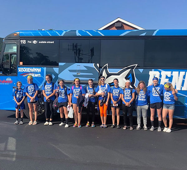 A Penn College-branded bus, one of two in the fleet of Susquehanna Trailways – a generous supporter of Wildcat Athletics – transported the South Williamsport Little League softball team to the Williamsport Regional Airport this past weekend for its flight to Portland, Oregon. The 12-year-olds meet Asia-Pacific there on Wednesday in the first game of the Little League Softball World Series.Photo provided