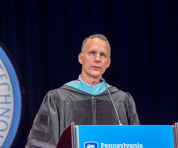 During his first commencement as provost, Michael J. Reed, vice president for academic affairs, addresses the audience.