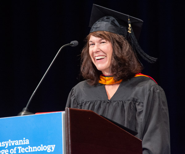 Lu-Anne Antisdel, a physician assistant graduate from Rome, Pa., crosses the stage.