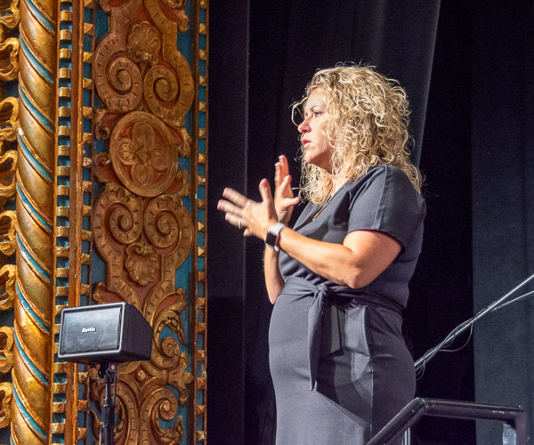 Sarah S. Moore, instructor of human services, signs the college’s alma mater.