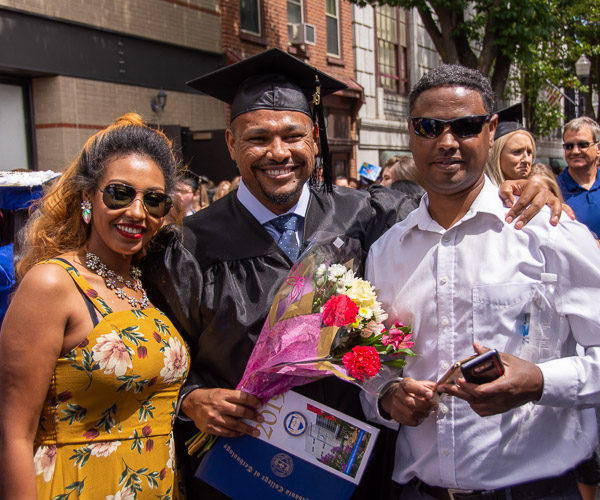 Michael Adera, a physician assistant grad from Bowie, Md., shares the occasion with family.
