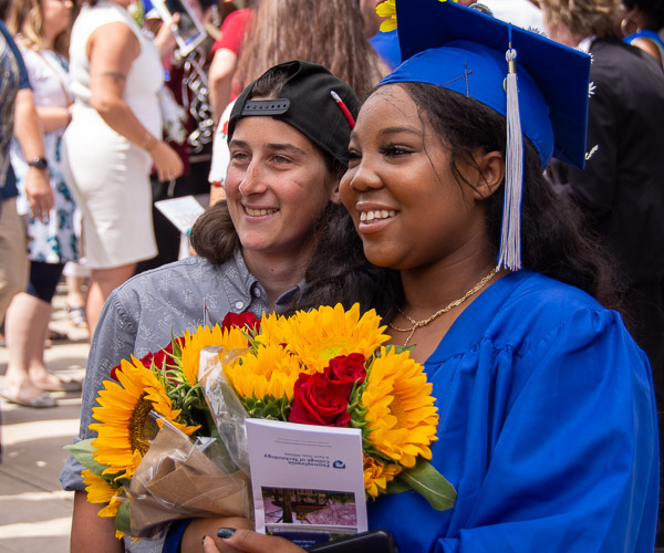 Jacqueline M. Westervelt, an applied management graduate from Rutherford, N.J., shares a heartfelt hug with her aunt Cheryl.
