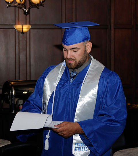 Student speaker, President’s Award winner and Wildcat wrestling standout Dylan G. Otis, of Wyalusing, provides remarks.