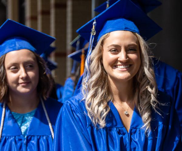 Radiography graduates gather in front of the Advanced Technology and Health Sciences center, where they spent significant time honing their skills.