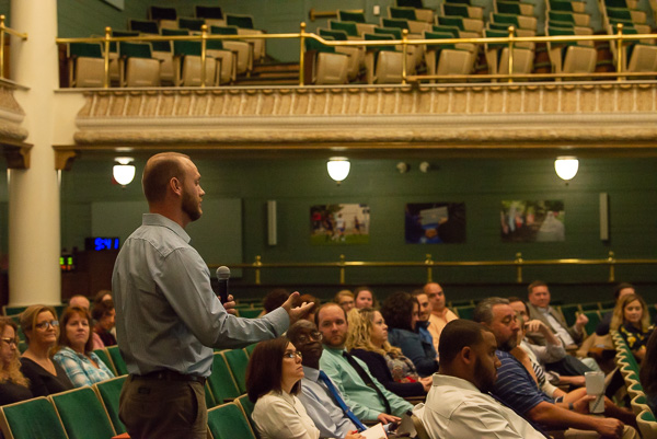 Mobilized by a guest speaker's incisive perspective and moved by his inspiring experience, a cross-section of faculty, staff and students engaged in an essential conversation about furthering academic achievement for all. In a Thursday presentation titled, "Action and Accountability," Quadrese' M. Glass – a recent Dickinson College alumnus about to assume a graduate program coordinator position in South Africa on behalf of an educational nonprofit – discussed how "inclusivity" can be more than a concept; how the Penn College family can provide a welcoming home to students who don't feel as though they belong here. Facilitated by the Admissions Office (particularly Nicole G. Beerman, admissions counselor for diversity initiatives, and counselors Lorenzo A. Marefka and Lee A. Dawson), the talk addressed how the campus community can fold diversity into its daily interactions and classroom curricula. Glass is a graduate of Philadelphia Futures, which provides low-income, first-generation students with the tools, resources and opportunities necessary for college success. Penn College has a relationship with that program, funded by the Brook J. Lenfest Foundation, which provides financial and academic support for students enrolled in associate degree majors.