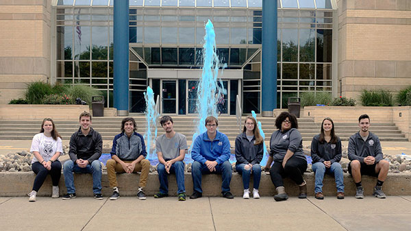Nine members of Penn College's Student Government Association and Wildcat Events Board introduced dye into The Veterans’ Fountain at first light Monday morning, encouraged by the Office of Student Engagement and General Services in the traditional prelude to Homecoming and Parent & Family Weekend. The annual observance is a time to connect alumni, students, families and friends through many great events across a beautiful college campus. Among the activities showcasing Wildcat Pride are the ninth annual Alumni Golf Outing, the Alumni & Friends Tent Party, a bonfire outside Madigan Library, breakfast with President Davie Jane Gilmour, and open academic labs. Men's and women's soccer games on the new UPMC Field, featuring a number of local food trucks, and an Athletic Hall of Fame Dinner will also take place. (Photo gallery)