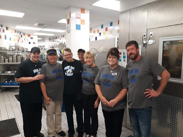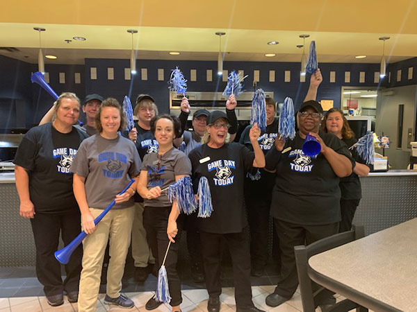 Dining Services staff is wishing "Good luck" to all Penn College sports teams this year by donning Game Day T-shirts whenever the Wildcats play at home. The employees pictured at left, for instance, suited up in honor of the women's "Battle for the Lumber" soccer match against Lycoming College on Wednesday night.Photos provided