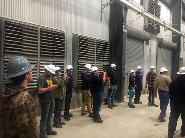 Onsite power generation students had an opportunity to tour one of IMG Energy Solutions plants in October, traveling to the Alpaca Energy site in Bradford County: a 20-megawatt facility that houses three Rolls-Royce power plants. "These units each have a Bergen engine that is powered on natural gas from a local pipeline," explained John D. Motto, instructor of diesel equipment technology at Penn College. "Students were able to gain valuable insights on maintenance and operation – not only of gaseous-fueled engines but of the power plant, as well." Christopher Clary, IMG's manager of operations for northeastern Pennsylvania, gave the tour. IMG Energy is a partner of Penn College, hiring a number of students for internships and many alumni who have gone to work full time for IMG. "This was a great opportunity for the power generation students to see what they will be working with when they graduate," added Motto (who also provided the photos).