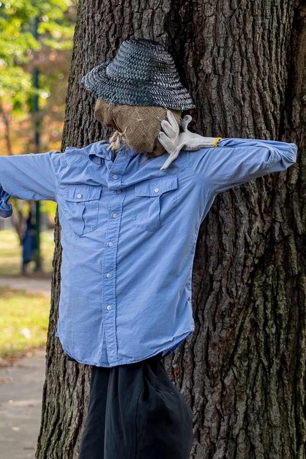 Straw man's best friend proves a faithful fall companion at West Fourth and Maynard streets.