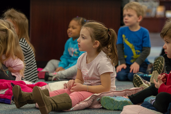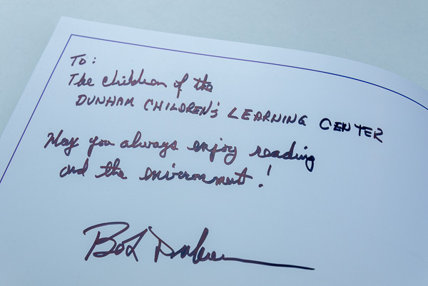 Following a reading by librarian Nicole S. Warner that sparked a variety of pint-sized comments and questions about sandhill cranes, the children listened intently as CLC director Barbara J. Albert read Dunham’s inscription in the front of the book:
