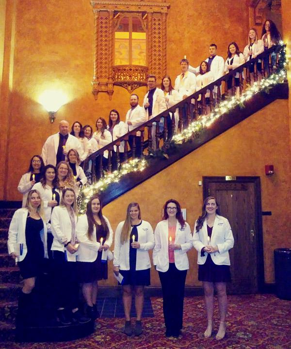 Fulfilling a pre-commencement tradition, Penn College’s nursing program hosted a pinning ceremony for December graduates of the Bachelor of Science in nursing, traditional. Twenty-four nursing graduates received lapel pins during the ceremony, held in the Community Arts Center on Dec. 20, the day before the college’s Fall Commencement. They also heard from speakers selected by the class: nursing faculty member Laura K. Landis, assistant professor of nursing; and fellow December 2019 nursing graduate Dustin E. Neumann, of State College. Following program tradition, the students recited the Nightingale Pledge and “passed the lamp” to a future nursing graduate.Photo courtesy of Tina R. Strayer, nursing office assistant, completion degrees