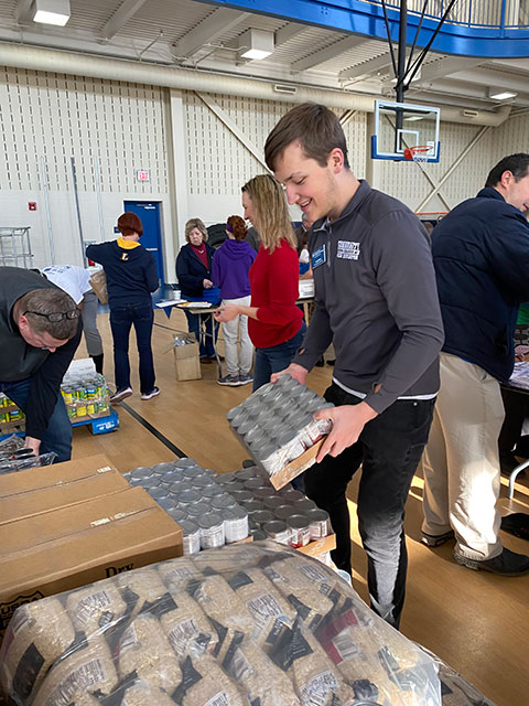 Selfless volunteers prep vegetable bags for distribution through the Central Pennsylvania Food Bank.