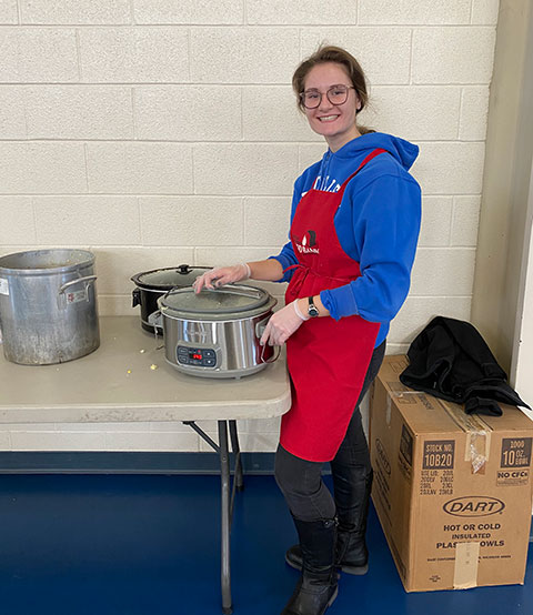Serving up samples of the food being distributed is Olivia C. Ferki, a student development assistant from Richboro.