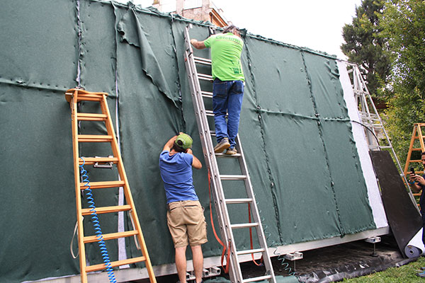 The disassembled walls are loaded into a truck, destined for Penn State. Several days later, the walls are sent to Italy.